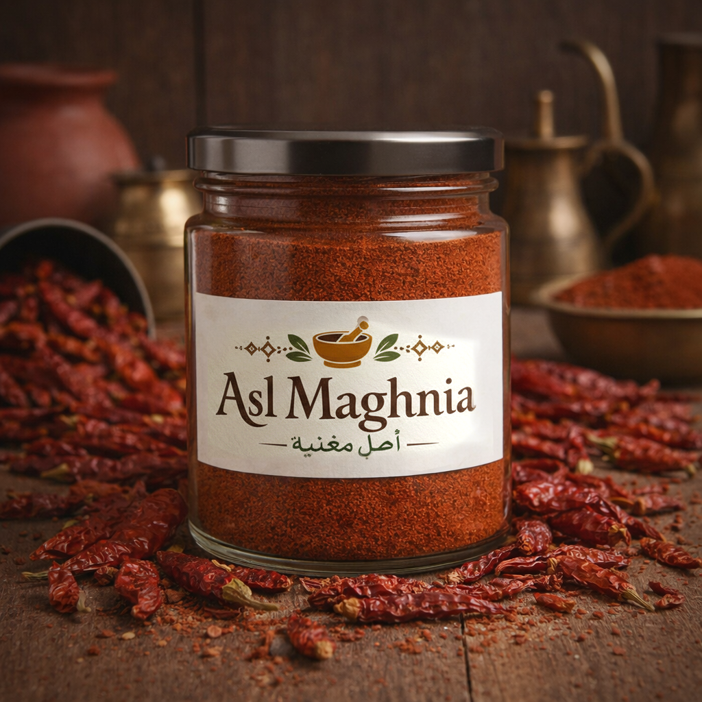 فلفل أحمر أصل مغنية يتم اختياره بعناية ثم يُطحن في مغنية بطريقة تحافظ على لونه الأحمر الطبيعي ونكهته الدافئة. نعتمد أسلوب طحن متوازن يمنح التابل حضورًا واضحًا دون حدة مفرطة، ليضيف حرارة خفيفة وطعمًا غنيًا يتطور أثناء الطهي.